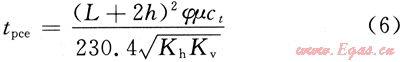 對于式(5),t0可理解為水平井開井生產(chǎn)至垂直平面徑向流結(jié)束時間,記為tpce;r0為擬圓形坑道外緣半徑,記為rpce。關(guān)于tpce的確定,利用Giger等人提出的等效滲透率的方法[4],并結(jié)合式(1)以及tpce的表達式可以容易得出: