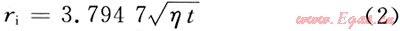 ri2=r02+14.4η(t-t0)    (5)