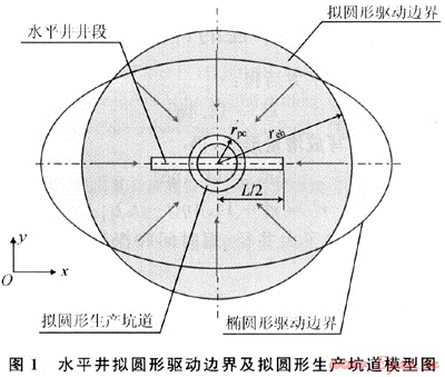筆者是基于現(xiàn)有油氣井探測半徑公式主要應(yīng)用于直井并存在諸方面的缺陷而提出的。將水平井滲流問題轉(zhuǎn)為擬圓形坑道的虛擬直井滲流問題,從而得出油氣藏水平井探測半徑計算公式。