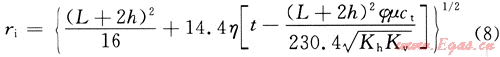 石油工業(yè)中國際上對于探測半徑的定義為:在某一確定的瞬時,給井中施加一個壓力脈沖,對該脈沖響應(yīng)達到最大值的位置就稱為探測半徑。在標(biāo)準(zhǔn)單位制式下,探測半徑表示為[1]
