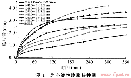 2) 儲層巖石中黏土礦物含量高。黏土礦物中以膨脹性蒙脫石為主,黏土線性膨脹大,水敏性極強。巖石中黏土礦物含量10%~30.0%,其中蒙脫石含量為70%~80%,巖心粉清水線性膨脹量達到4.0mm,水敏指數0.71~0.95,水敏性極強(見圖1、表1)。