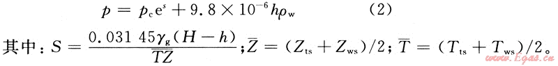 式中:p為井底流動(dòng)壓力,MPa;pc為套壓,MPa;H為井深,m;h為井底積液高度,m;ρw為地層水密度,kg/m3;γg為天然氣相對(duì)密度,無因次;Tts、Tws為靜止氣柱的井口、井底溫度,K。
