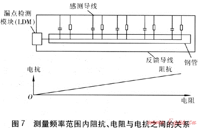 感測導(dǎo)線用于測量阻抗,且與反饋導(dǎo)線形成回路,因此感測導(dǎo)線與反饋導(dǎo)線必須在被測管段的末端連接在一起形成一個回路。這樣,漏點(diǎn)檢測系統(tǒng)通過檢測感測導(dǎo)線與反饋導(dǎo)線之間的電阻,以及感測導(dǎo)線與管道之間的阻抗判斷管道是否泄漏,依此監(jiān)測管道和保溫層之間的濕度,經(jīng)軟件處理確定泄漏度和漏點(diǎn)位置。
