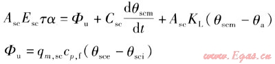 平板型太陽能集熱器吸熱板內(nèi)的流體(乙二醇水溶液)與太陽輻射進(jìn)行能量交換,其性能可用能量平衡方程描述: