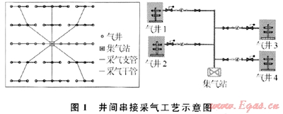 針對蘇里格氣田“三低”特點,科研人員積極探尋集氣工藝新模式——即充分利用井下節(jié)流工藝創(chuàng)造的條件,實現(xiàn)了井口不加熱、不注醇、采氣管道不保溫的中低壓集氣工藝技術(shù)。該工藝主要是對井口到集氣站的集輸系統(tǒng)進行了簡化,優(yōu)化了集氣工藝。井口既沒有加熱爐,也沒有注醇系統(tǒng),井口及采氣管道均不需要保溫、注醇,簡化了水合物防治工藝。