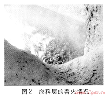 燃料層表層秸稈壓塊的快速著火形成比較長的揮發(fā)分火焰,見圖3。