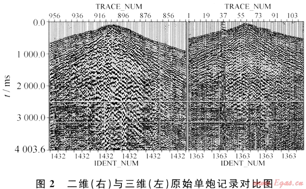從以上分析可看出:相同位置處的二維原始單炮記錄與三維原始單炮記錄反射特征存在明顯的差異。