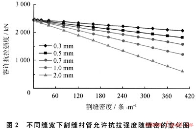 割縫縫寬大于2mm,隨著縫密的增加襯管強度急劇下降(圖2),常規(guī)割縫管不滿足本井堵漏材料的返排要求,應(yīng)采用預(yù)孔襯管完井或下入帶ECP的割縫襯管酸化后投產(chǎn)。