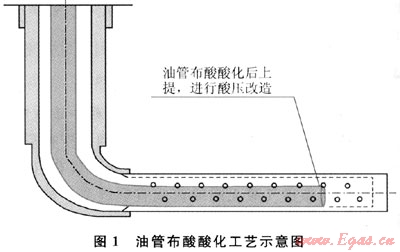 2007年以前,靖邊氣田重點(diǎn)采用了水平段油管布酸酸化+酸壓改造工藝(圖1),在2口水平井進(jìn)行了現(xiàn)場試驗(yàn),其改造效果較好。