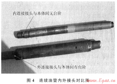 針對以上問題,采用流量計(jì)算公式驗(yàn)證連續(xù)油管內(nèi)連接接頭(內(nèi)徑:11mm,外徑:38.1mm)最大允許施工排量,由結(jié)果可知參數(shù)滿足水平井改造要求,因此采用連續(xù)油管內(nèi)連接接頭,使接頭與本體外徑一致,消除了遇阻遇卡風(fēng)險(xiǎn)(圖4)。在某井上使用連續(xù)油管內(nèi)連接接頭,順利實(shí)施了連續(xù)油管水平段洗井替泥漿和拖動布酸作業(yè),優(yōu)化效果明顯。