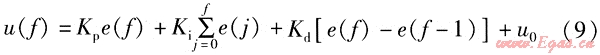 △u(f)=Kp[e(f)-e(f-1)]+Kie(f)+Kd[e(f)-2e(f-1)+e(f-2)]    (11)