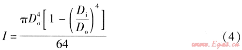 未補(bǔ)強(qiáng)跨越管道截面慣性矩,的計算式為: