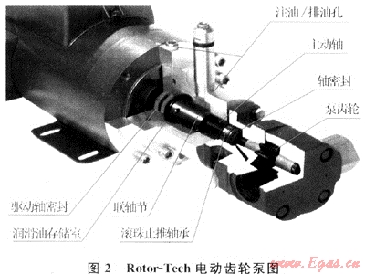 電驅(qū)動的齒輪泵主要由電機、泵齒輪、軸、泵體、泵蓋、軸承套、軸端密封等組成,其內(nèi)部結(jié)構(gòu)見圖2。電驅(qū)動的齒輪泵的排出壓力范圍為0.035~24.13MPa,流量范圍為0.114~38.61m3/h,泵正常操作溫度可達93.3℃。