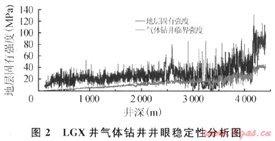 進行分析評價。利用此方法對七里北101井、龍17井及LGX井氣體鉆井井段實鉆資料驗證分析表明,當?shù)貙幽滁c的巖石固有強度小于氣體鉆井條件下保持井壁穩(wěn)定的臨界強度時,井壁不穩(wěn)定,否則井壁處于穩(wěn)定狀態(tài)。