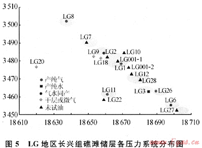 2.3 LG1井、LG2井井區(qū)與LG3井、LG6井都為不同的壓力系統(tǒng)