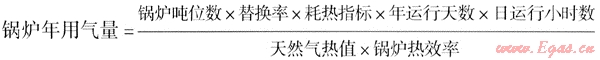 b) 鍋爐能耗替代法:由于對于某種特定的工業(yè),鍋爐用氣量和工藝用氣量通常具有一定的比例關(guān)系,因此可以通過預(yù)測工業(yè)鍋爐的用氣量來預(yù)測城市總工業(yè)用氣量,該方法主要適用于工業(yè)發(fā)展方向明確、工業(yè)鍋爐資料較全的城市,其中鍋爐用氣量計算方法如下: