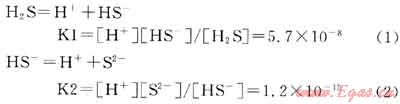 H2S是溶于水的二元酸,在水溶液中,H2S的酸性表現(xiàn)形式體現(xiàn)在下面的兩個電離平衡中[7]