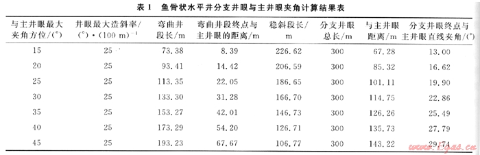 在魚骨狀分支水平井沒計(jì)過程中,分支井眼與主井眼只有達(dá)到一定的夾角的情況下,才顯示出魚骨狀分支水平井的巨大經(jīng)濟(jì)效益,但是鑒于現(xiàn)場(chǎng)鉆井技術(shù)條件,分支井眼與主井眼夾角是有一定限制的。因此分別以45°夾角和20°夾角兩種情況為例進(jìn)行了計(jì)算分析。