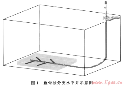 我國煤層氣資源量豐富,煤層滲透率介于0.1~0.001mD,屬于低滲透煤儲(chǔ)層,致使煤層氣開采效果難如人意[1~2]。魚骨狀分支水平井是指在一個(gè)主水平井井眼兩側(cè)再鉆出多個(gè)分支井眼作為通道的井眼軌跡形態(tài)(圖1)。由于魚骨狀分支井在主水平井眼兩側(cè)具有多個(gè)分支,能顯著增加煤層裸露面積、提高開發(fā)效率,對(duì)于低滲透煤層氣的開發(fā)具有重要意義。