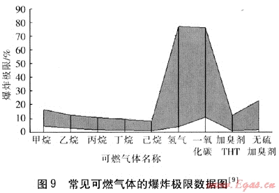 表5 常見可燃氣體的爆炸極限數(shù)據(jù)表[9]