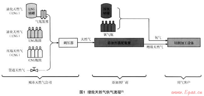 市場(chǎng)現(xiàn)有增效氣項(xiàng)目多為二級(jí)供應(yīng)方式,即天然氣公司按基本氣價(jià)將純天然氣售給添加劑廠商,由其通過專用摻混設(shè)備加入添加劑后,直接以增效天然氣的形式銷售給終端用戶,按天然氣基價(jià)、添加劑價(jià)格、設(shè)備管道租賃費(fèi)的綜合氣價(jià)銷售。