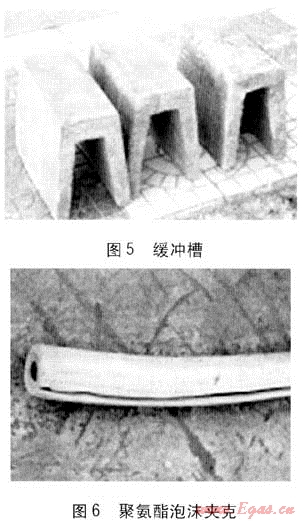 c. 在管道上方安裝混凝土緩沖槽,緩沖槽開(kāi)口朝下放置,并整齊排列,見(jiàn)圖8右。