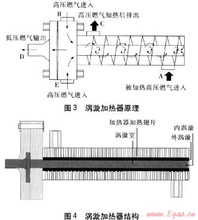 高壓燃?xì)馔ㄟ^(guò)渦漩先導(dǎo)燃?xì)饧訜崞?以下簡(jiǎn)稱(chēng)渦漩加熱器)時(shí),渦漩加熱器將燃?xì)鉁p壓產(chǎn)生的能量轉(zhuǎn)化成高溫?zé)釟饬鳎缓罄酶邷責(zé)釟饬鲗?duì)調(diào)壓器指揮器進(jìn)行加熱。