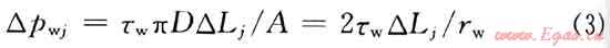 其中△pwj為壁面剪切應力造成的摩擦壓力降。即