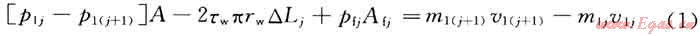 以井筒上第j條裂縫和第j+1條裂縫之間的滲流進行研究(圖1),第j條裂縫左端的進入壓力為p1j,出口端的壓力為p2j,,進入口速度和出口速度為v1j和v2j。考慮井筒內(nèi)壓降,由動量定理可得: