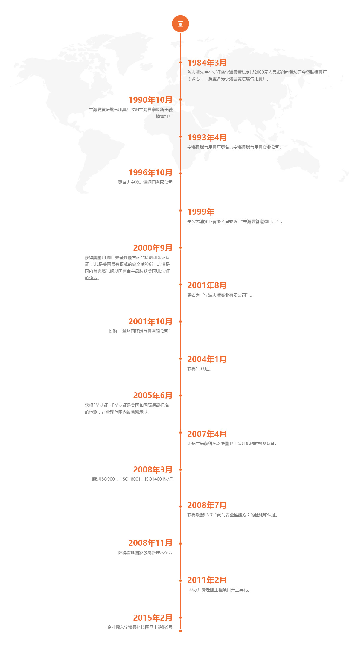 寧波志清實業(yè)有限公司創(chuàng)建于1984年,位于風(fēng)景秀麗、人杰地靈的浙江寧海;是一家集研發(fā)、制造、銷售為一體的高新技術(shù)企業(yè)。公司占地57700平方米,建筑面積62000平方米;擁有現(xiàn)代化的辦公環(huán)境、先進(jìn)的生產(chǎn)設(shè)備以及一批高素質(zhì)科研技術(shù)人員、高級管理人才。公司本著“品質(zhì)保證,質(zhì)量為本”的品質(zhì)理念,率先通過ISO9001質(zhì)量管理體系、ISO14001環(huán)境管理體系、OHSAS18001職業(yè)健康安全管理體系、壓力管道元件安全體系等認(rèn)證。