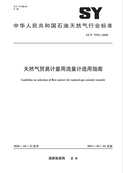 本標(biāo)準(zhǔn)規(guī)定了用于天然氣貿(mào)易計(jì)量系統(tǒng)中流量計(jì)(以下簡(jiǎn)稱流量計(jì))的選用方法,并給出了計(jì)量.系統(tǒng)中流量計(jì)選用示例和不確定度評(píng)估方法。