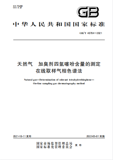 天然氣加臭劑四氫噻吩含量的測定 在線取樣氣相色譜法GB∕T 40704-2021