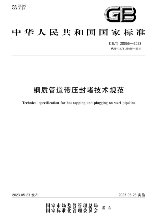 本文件代替 GB/T 28055-2011《鋼質(zhì)管道帶壓封堵技術(shù)規(guī)范》與 GB/T 28055-2011 相比,除結(jié)構(gòu)調(diào)整和編輯性改動(dòng)外,主要技術(shù)變化如下: