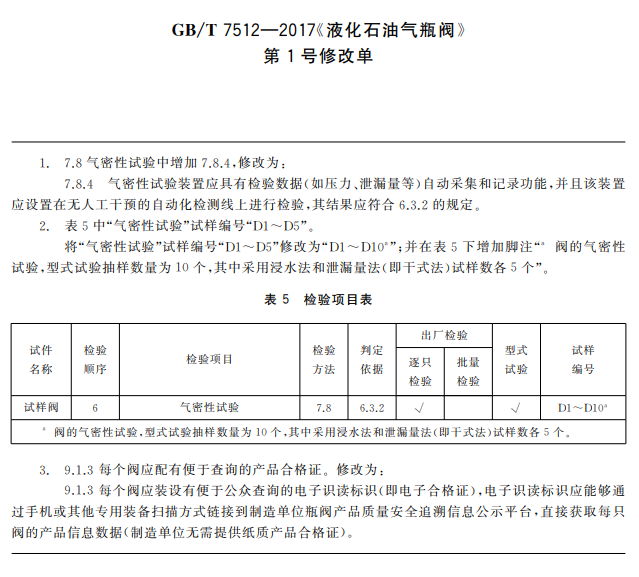 ——增加了非金屬密封件進(jìn)廠復(fù)驗(yàn)的要求;——閥的每批數(shù)量由20 000個(gè)改為10 000個(gè);